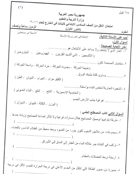 Adz4u Omniawagdy نشر اختبارات العلوم للصف السادس الابتدائى أبناؤنا فى الخارج الدور الأول والثانى للأعوام السابقة