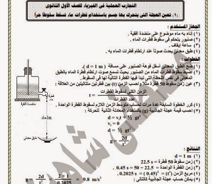 تجارب عملى الفيزياء للصف الاول الثانوي