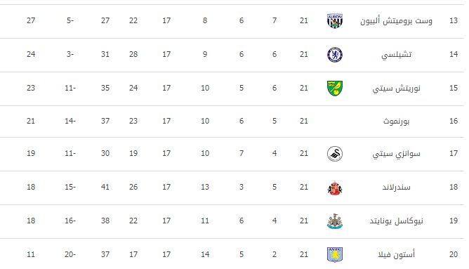 ترتيب فرق الدوري الانجليزي قبل الجولة الثامنة عشر هاي كورة