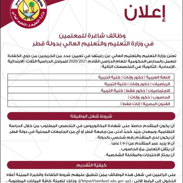 وظائف قطر En Twitter وظائف شاغرة في وزارة التربية والتعليم في قطر