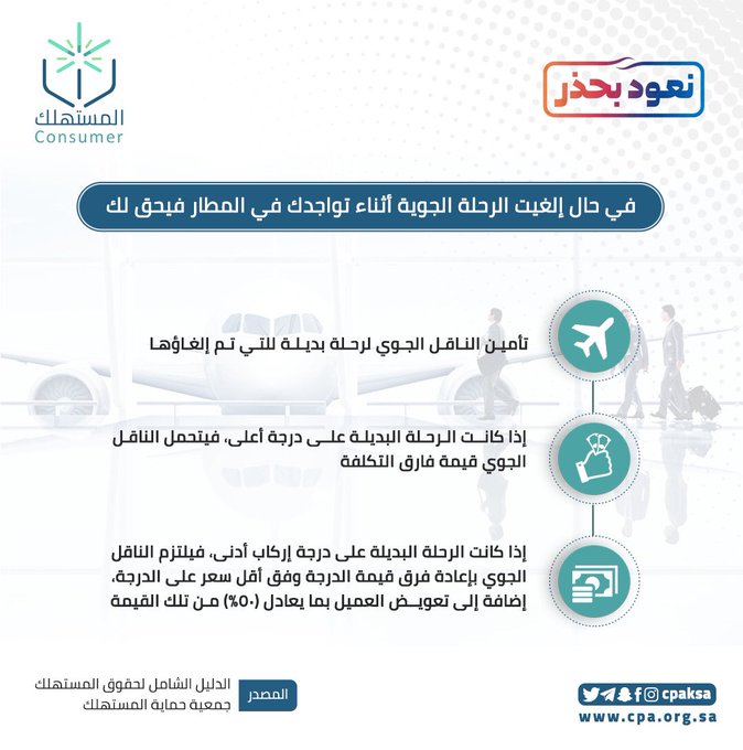 مجلة سيدتي حماية المستهلك في السعودية توضح حقوق المسافر حال إلغاء الناقل الجوي رحلته بالمطار أبزرها لرحلة بديلة للتي تم الغاؤها