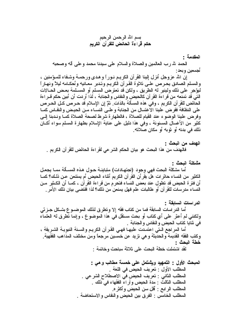 Pdf Ruling On The Menstruating Woman Entering The Mosque And Reading The Qur Aan حكم دخول الحائض للمسجد وقراءة القرآن