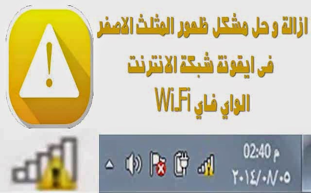 ازالة و حل مشكل ظهور المثلث الاصفر فى ايقونة شبكة الانترنت الواي فاي Wi Fi