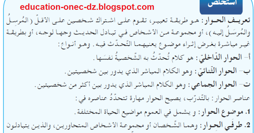 تحضير درس الحوار في مادة اللغة العربية للسنة الثانية متوسط الجيل الثاني