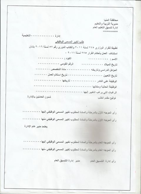 ننشر استمارة وطلب تغيير مسمى وظيفى بوزارة التربيه والتعليم