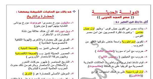 ملخص تاريخ اولى ثانوى ترم اول 2020 فى 3 ورقات وبس