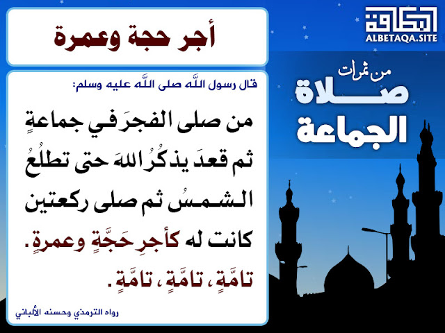 من ثمرات صلاة الجماعة أجر حجة وعمرة نور الهدي القران