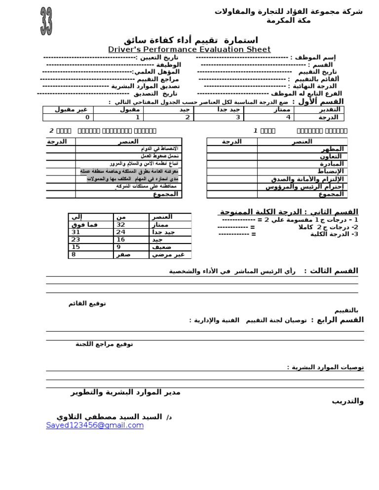 نموذج تقرير تقييم أداء السائقين والمحصلين Doc نموذج تقرير تقييم أدا السائقين Course Hero