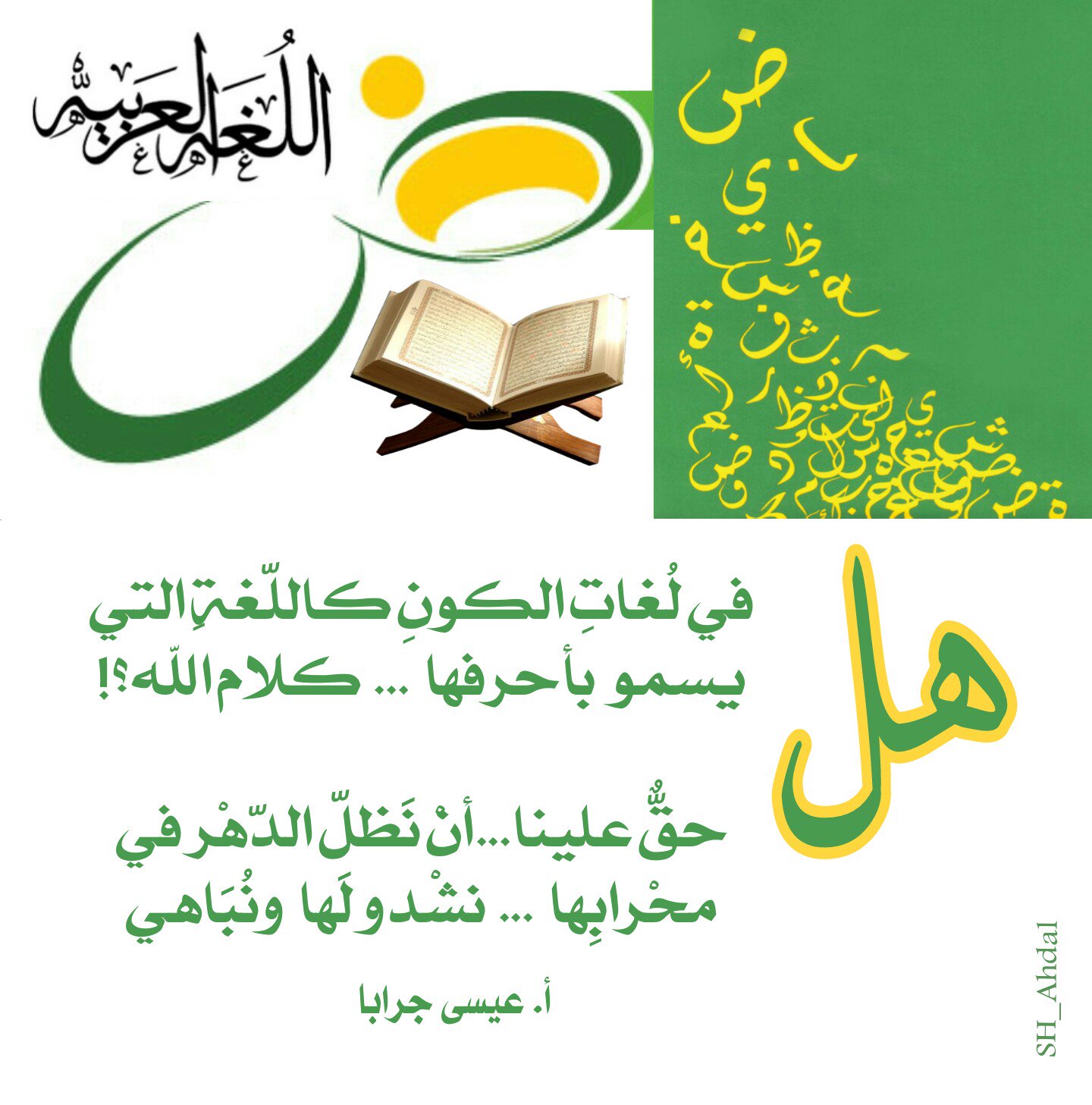 ه ــــد ايـــآ On Twitter هل في لغات الكون كاللغة التي يسمو بأحرفها كلام الله حق علينا أن نظل الدهر في محرابها نشدو بها ونباهي عيسى جرابا Https T Co Jouwsl3wqp